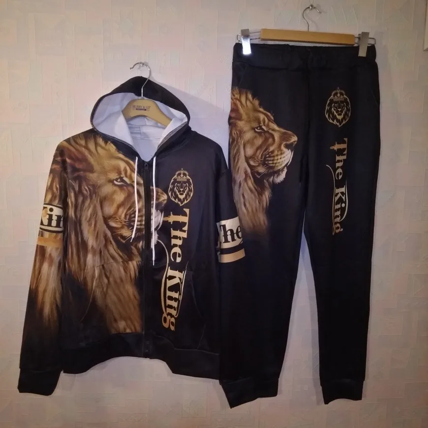 Спортивный костюм мужской, на молнии, с 3D принтом льва